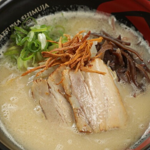 創業以来、三代にわたり愛され続ける「薩摩しむじゃ」の味。薩摩・博多、どちらのラーメンにも香ばしい揚げごぼうを添え、豚骨スープの旨みと深い香りを引き立てています。鹿児島醤油のまろやかさが光る「薩摩ラーメン」、博多醤油の切れ味が際立つ「博多ラーメン」。それぞれの個性を、心ゆくまでお楽しみください。
